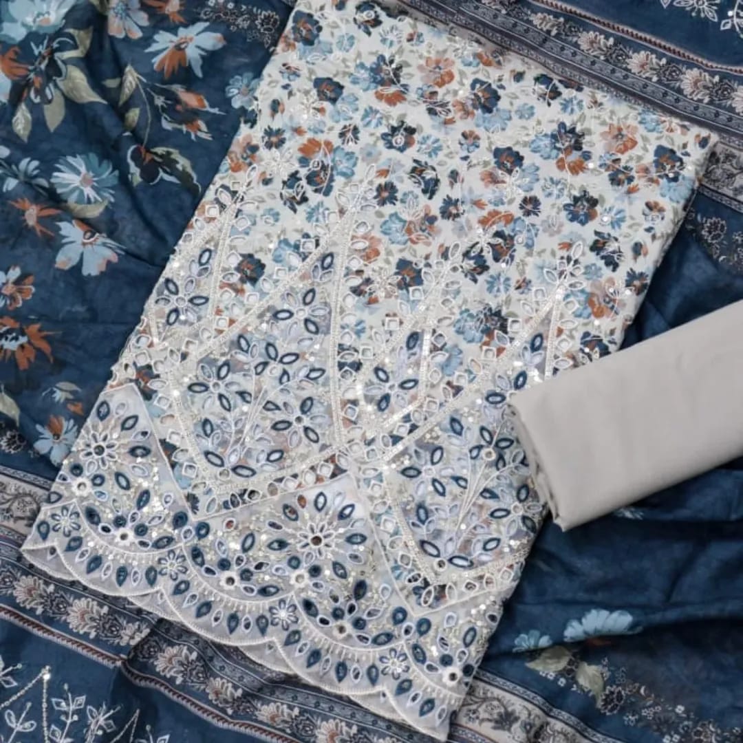Sapphire 3PC Embroidered Off White Lawn Suit