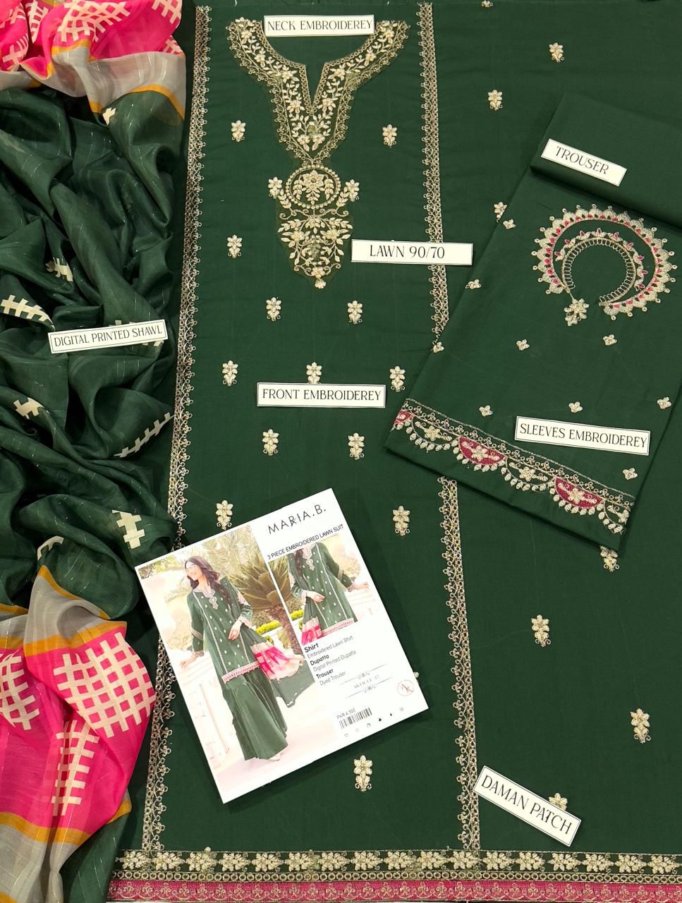 Sapphire 3PC Embroidered Lawn Suit Green
