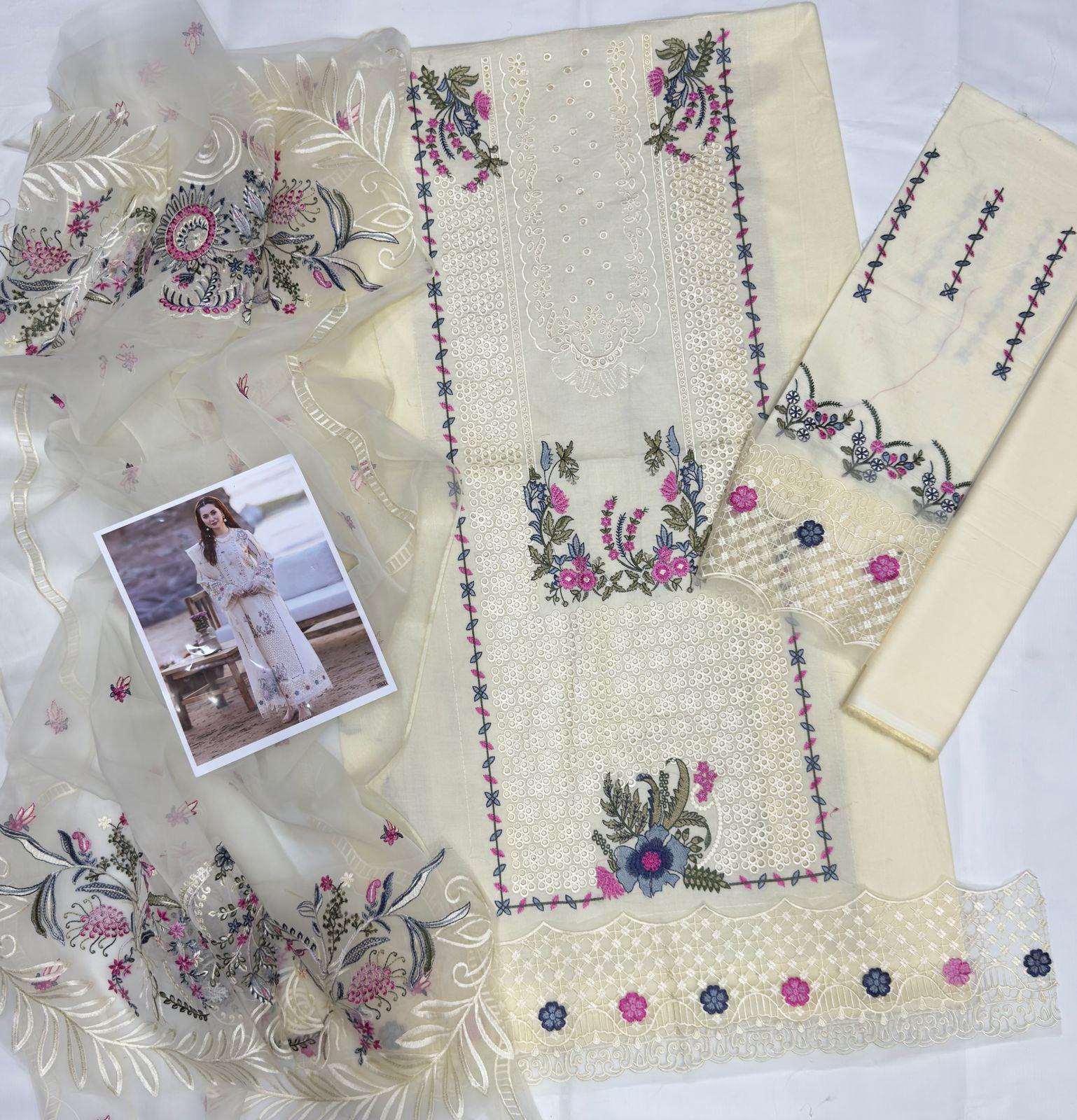 Sapphire 3PC Embroidered Off White Lawn Suit